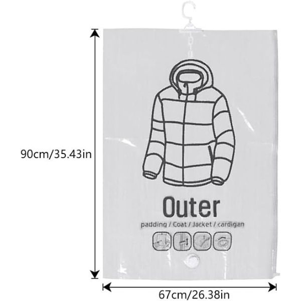 Maximalizujte si priestor v šatníku a udržujte ho usporiadaný vo všetkých ročných obdobiach. Tieto závesné stlačiteľné úložné vrecia použite na uloženie veľkých, objemných alebo sezónnych oblekov, šiat, hrubých viest, búnd a kabátov v šatníku. Naše vákuovo uzavreté úložné vrecia chránia vaše oblečenie pred vodou a pachmi, takže sú ideálne na dlhodobé používanie.