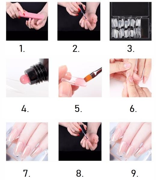 Pod umelý necht nanes tenkú vrstvu poly gélu, ktorý potom prilepíš na svoj necht. Po sušení pod UV lampičkou umelý necht jednoducho odlepíš.