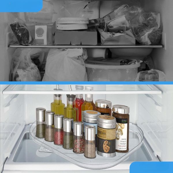 Udržujte si chladničku prehľadnú a čistú s našou priehľadnou obdĺžnikovou táckou do chladničky. Tento organizér do chladničky, otočný o 360°, je ideálny na ľahký prístup a maximálne využitie priestoru. Jednoducho sa čistí, má protišmykové prísavky a nevyžaduje si žiadnu inštaláciu.