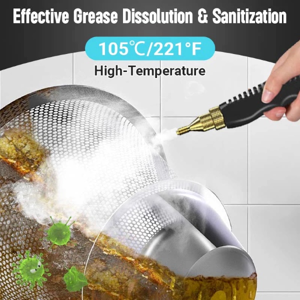 Ideálny na čistenie digestorov, kuchynských hrncov, chladničiek, klimatizačných jednotiek, áut, kúpeľní, kuchýň a ďalších vďaka vysokému parnému tlaku 3BAR.