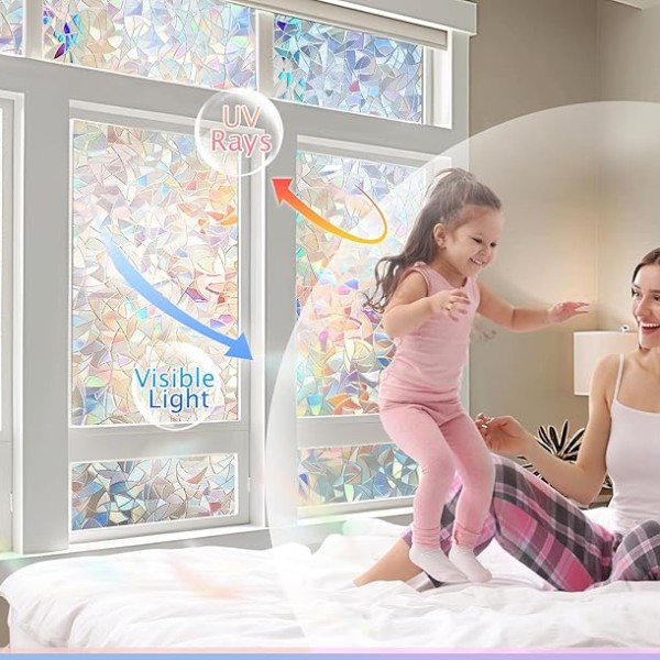 Keď na fóliu dopadá slnečné svetlo, vytvára fascinujúcu dúhu farieb v celej miestnosti, ale neblokuje prirodzené svetlo. Táto fólia funguje dobre v akejkoľvek miestnosti – obývačke, kúpeľni, kancelárii a dokonca aj na sklenených dverách, čo z nej robí univerzálne riešenie pre rôzne priestory.